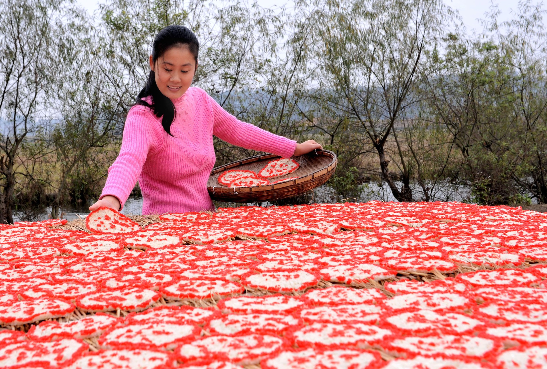 2、米花:在洞口的不少地区,逢年过节、竖屋上梁、结婚生子等重大喜庆活动,总要摆上一盘质地洁白,颗粒晶莹,周围镶嵌着红边,中间红光点点的米花,以示喜庆。