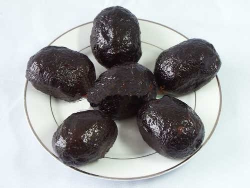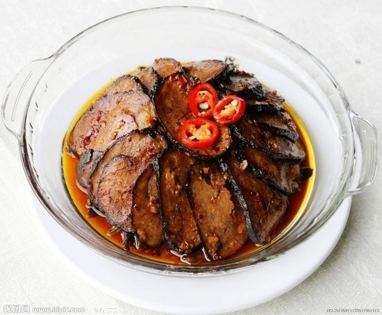 4、猪血丸子:猪血丸子,亦称血粑,是洞口县的传统食品,始于清康熙年间,民间历代相传,至今已有好几百年的历史。主要原料是豆腐,先将豆腐捏碎,再将新鲜猪肉切成肉丁或条状,拌以适量猪血、盐、辣椒粉、五香粉以及少许麻油、香油、味精、芝麻等佐料,搅拌匀后,做成馒头大小椭圆形状的丸子,放在太阳下晒几天,再挂在柴火灶上让烟火熏干,烟熏的时间越长,腊香味越浓。猪血丸子,含植物蛋白质和多种人体必需的氨基酸。咸淡适度,腊香可口,风味独特,营养丰富,易于保藏,携带方便,是赠送亲友的珍贵礼品。